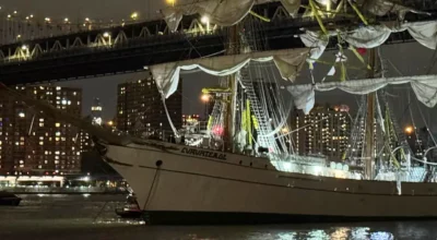 काठमाडौं । मेक्सिकोको नौसेनाको एक जहाज न्युयोर्कको पुलमा ठोक्किएको छ । मेक्सिकोको एउटा ठूलो प्रशिक्षण