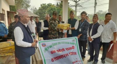 उदयपुर । डिभिजन वन कार्यालय उदयपुर गाईघाटकाे वनमा लागेको डढेलो नियन्त्रणका लागि अग्नी नियन्त्रण सामग्री