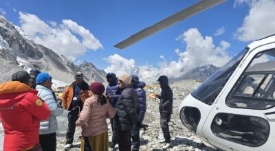 सोलुखुम्बु । गृहमन्त्री रमेश लेखकले आज सगरमाथा आधारशिविर (बेसक्याम्प) क्षेत्रको निरीक्षण भ्रमणमा पुगेका छन् ।