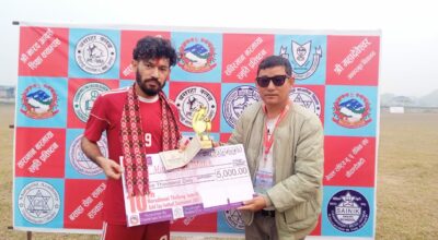 उदयपुर । उदयपुरको चौदण्डीगढी नगरपालिका–४ बसाहामा जारी दशौं संस्करणको नारदमुनी थुलुङ स्मृति गोल्डकप फुटबल प्रतियोगितामा