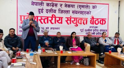 बुटवल । नेपाली कांग्रेस र नेकपा एमालेको दुई दलिय जिल्ला संयन्त्रको प्रदेश स्तरीय संयुक्त बैठक