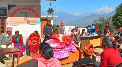 दोलखा । दोलखाको मेलुङ गाँउपालिका वडा नम्बर– २ ले पालिकाको सहयोगमा जेष्ठ नागरिकहरुलाई न्यानो कम्बल