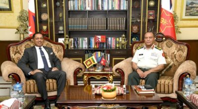 काठमाडौं । प्रधान सेनापति अशोकराज सिग्देल र नेपालका लागि श्रीलंकाका राजदूत एयर चीफ मार्शल सुदर्शन