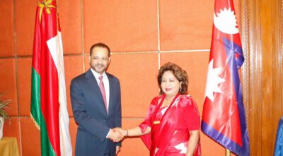 काठमाडौं । परराष्ट्रमन्त्री डा आरजु राणा देउवा र उनको निमन्त्रणामा सोमबार नेपाल आएका ओमानका विदेशमन्त्री