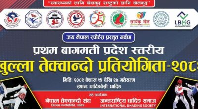जय नेपाल स्पोर्टस धादिङको आयोजना तथा नेपाल तेक्वान्दो संघ धादिङको तथा अन्तरराष्ट्रीय धादिङ समाज को