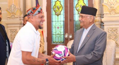 काठमाडौं । प्रधानमन्त्री केपी शर्मा ओली र ब्राजिलियन लेजेण्ड फुटबल खेलाडी रोबर्टो कार्लोसबीच भेट भएको