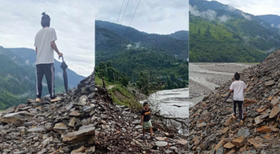 पहिरो छल्दै छाेराछाेरी बोकेर विद्यालय