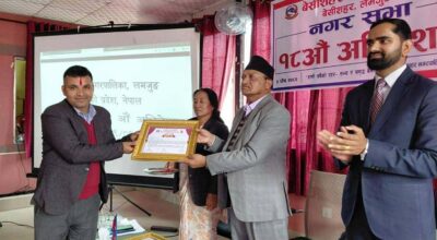 बेंसीशहर नगरसभामा उत्कृष्ट काम गर्ने विभिन्न क्षेत्रका व्यक्तिहरु सम्मानित