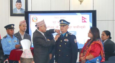 प्रहरी महानिरीक्षक दानबहादुर कार्कीले दर्ज्यानी चिह्न लगाउँदै जिम्मेवारी सम्हाल्नुभयो