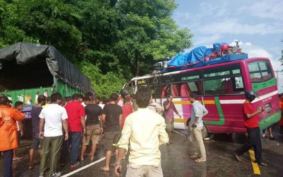 चितवनमा बस र ट्रक ठोक्कियो १ को मृत्यु, २५ जना घाइते