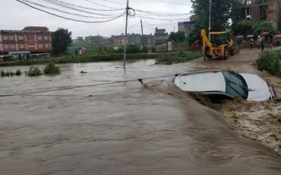 ललितपुरका विभिन्न स्थान डुबान, बाढीले गुडेको गाडी नै बगायो