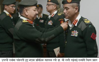 प्रधानसेनापतिबाट उपरथी दर्जाको दज्र्यानी चिह्न प्रदान