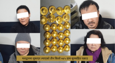 त्रिभुवन अन्तर्राष्ट्रिय विमानस्थलबाट झन्डै चार किलो सुन बरामद