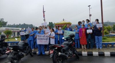 सिन्धुली जिल्ला अस्पतालमका नर्सहरू पनि आन्दोलनमा