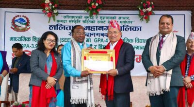 एसइईमा उत्कृष्ट अंक ल्याउने ८६ विद्यार्थीलाई ललितपुर महानगरको सम्मानसहित पुरस्कार