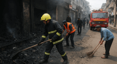 कामपाक्षेत्रको आगलागी नियन्त्रणमा, सडक सफाइ सकियो