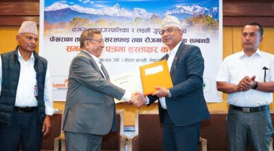 पोखरा महानगरपालिका र लक्ष्मी ग्रुुपबीच सम्झौता ,पर्यावरण संरक्षण ताल सरसफाइ तथा रोजगारी सिर्जना गरिने
