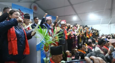 एमालेमा नवनिर्वाचित केन्द्रीय कमिटी सदस्यकाे शपथग्रहणकाे समय ताेकियाे