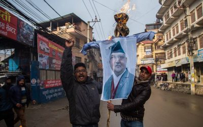 नेविसंघद्धारा प्रधानमन्त्री ओलीको पुत्ला दहन