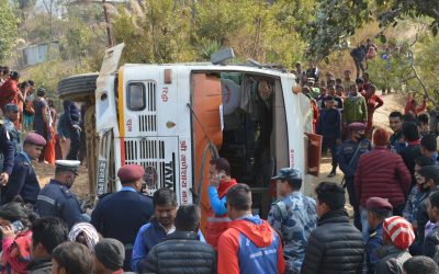 रामेछापमा बस दुर्घटना, दुईको मृत्यु, २४ घाइते