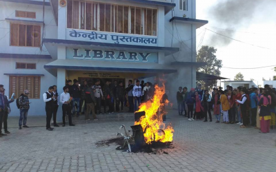 विश्व विद्यालयमा प्रिन्सिपलको मनोमानी, विद्यार्थीले गरे तोडफोड र पुत्ला दहन