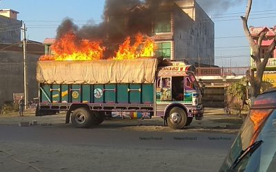 गुडिरहेको ट्रकमा एक्कासी आगलागी, करोड बढीको क्षति