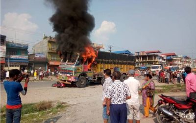 चितवनमा ट्रकको ठक्करबाट एकको मृत्यु, आक्रोशित पक्षद्धारा ट्रकमा आगजनी