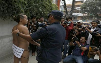 नयाँ मुलुकी ऐनको विरोधमा एक युवकले गरे सिंहदरबार अगाडि नाङ्गै प्रदर्शन