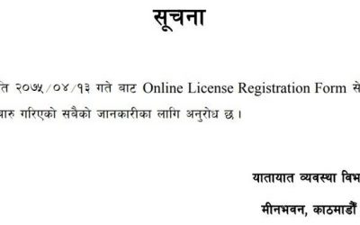 आजबाट देशैभरिका यातायात कार्यालयमा लाइसेन्स आवेदन खुल्यो