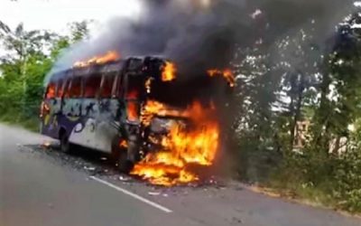 बनेपामा १२ जना यात्रु बोकेको मिनि ट्रकमा आगो लाग्यो