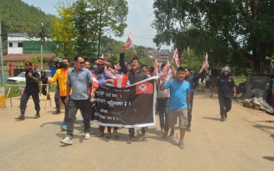 प्रहरीको घेरा तोड्दै प्रधानमन्त्री ओलीको पुत्ला जलाइयो