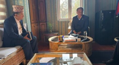 मन्त्री घिसिङ र हितेन्द्रदेव शाक्यबीच भेटवार्ता