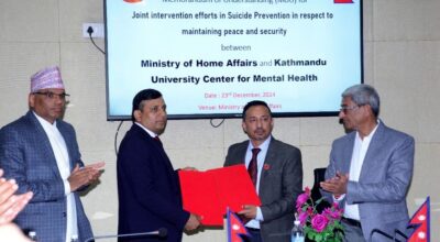 आत्महत्या न्यूनीकरण गर्न गृह मन्त्रालय र केयूबीच समझदारीपत्रमा हस्ताक्षर