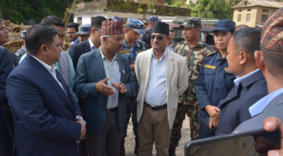 गृहमन्त्री लेखकद्धारा बाढीपहिरो प्रभावित भूमिडाँडा र बेथानचोक क्षेत्रको निरीक्षण