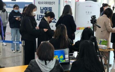 दक्षिण कोरियामा मास्क लगाई मतदान