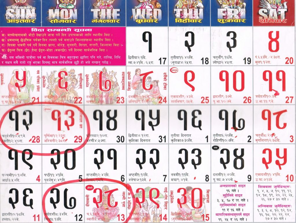 उहाँले भन्नुभयो, “यस वर्षका पञ्चाङ्गमा पनि मन्त्रालयले सार्वजनिक बिदाको सूची उपलब्ध गराउन ढिला गरेका कारण समितिले बिदा समावेश गरेको छैन, सार्वजनिक बिदा गृह मन्त्रालयले प्रकाशन गरेबमोजिम हुनेछ भन्ने सूचना राखिन्छ ।”